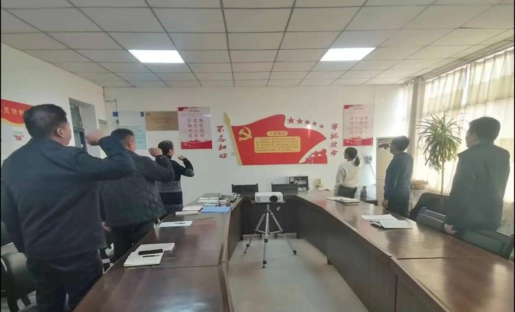 最后,全体党员肃立党旗前,重温入党誓词,将铮铮誓言刻入心间,思想上接受了一次再“洗礼”。